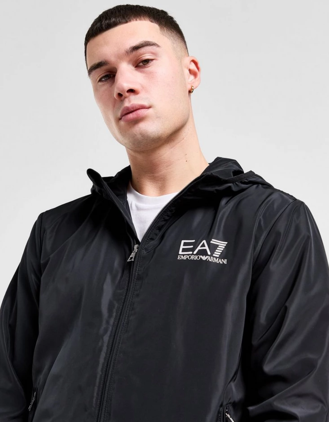 Get a fresh look that'll make a statement on your off-duty days with this men's Core Lightweight Jacket from Emporio Armani EA7. In a black colourway, this jacket is made from durable poly which keeps you covered and comfy at all times. With a full front zip, a mock neck, and an adjustable hood, this jacket has ribbed trims for the perfect fit. Finished with contrasting white EA7 branding to the chest.